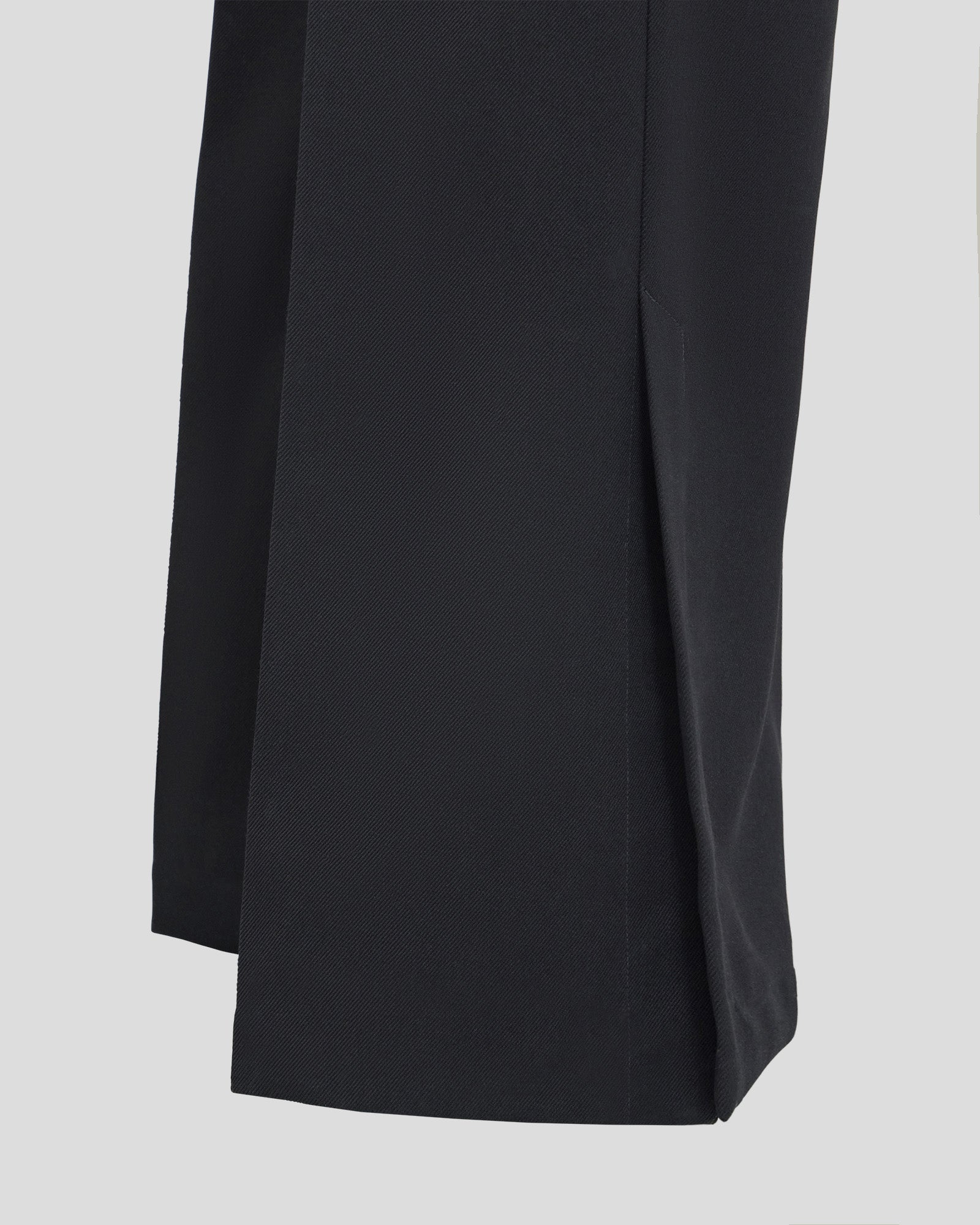 Cut from a medium-weight wool with a softer hand, offering structure without heaviness. The silhouette sits high on the waist and falls into a relaxed flare, detailed with subtle out-seam vents to elongate the line. Finished with a single back welt pocket for quiet utility.